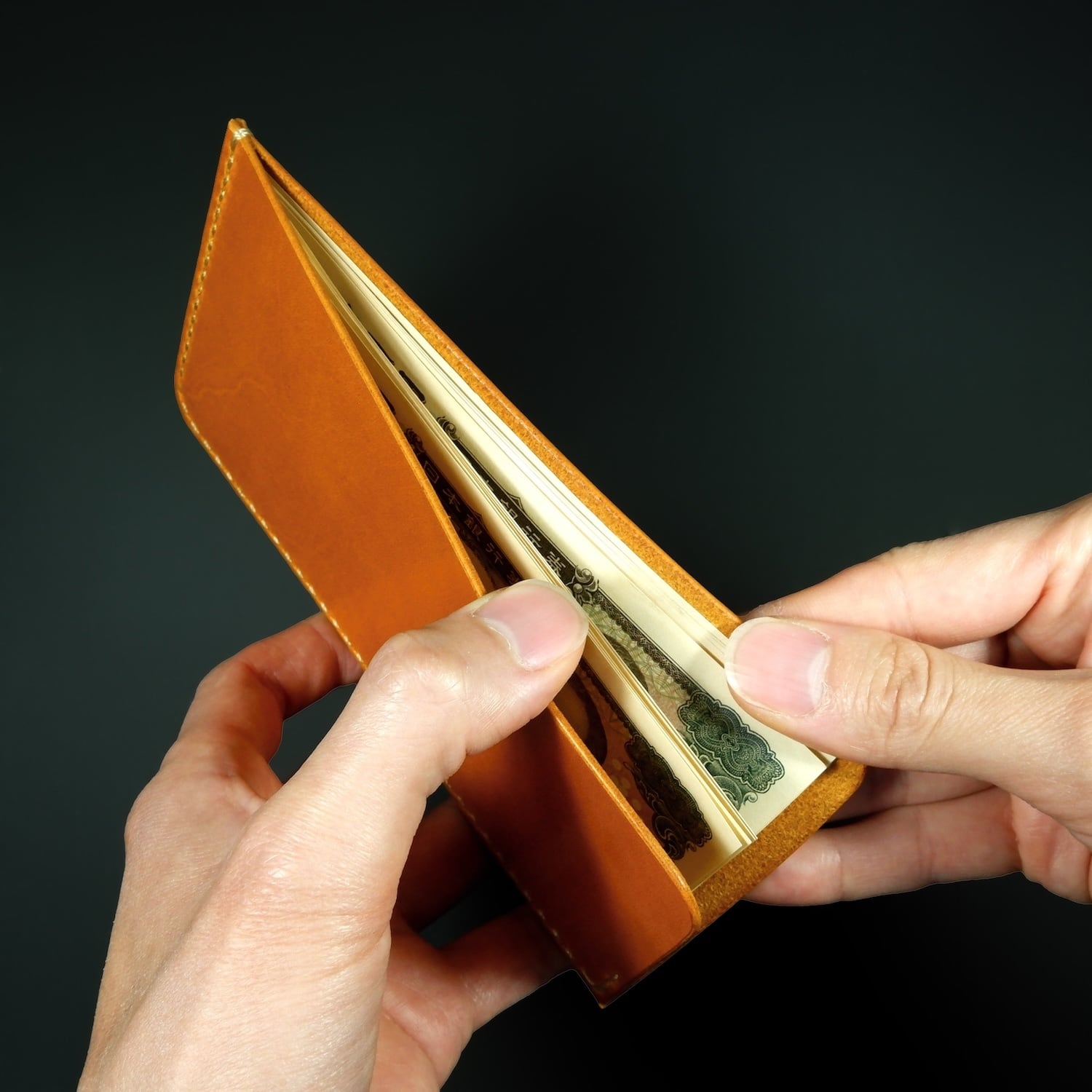 本製品は余計な機能をすべて削ぎ落とし、「札を美しく収納する」ことだけを追求した、本革製の札入れです。