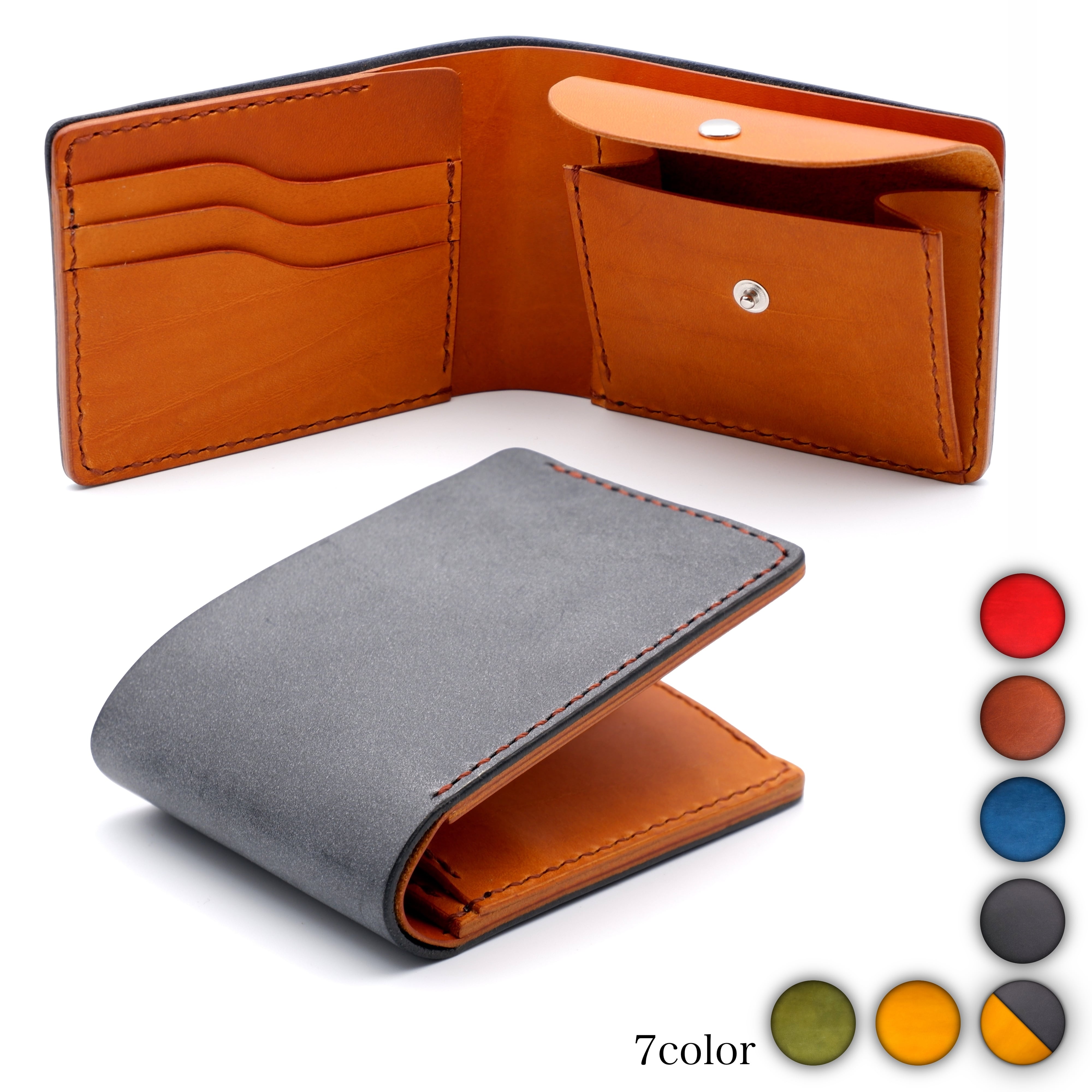本ヌメ革を使用した二つ折り財布です。
