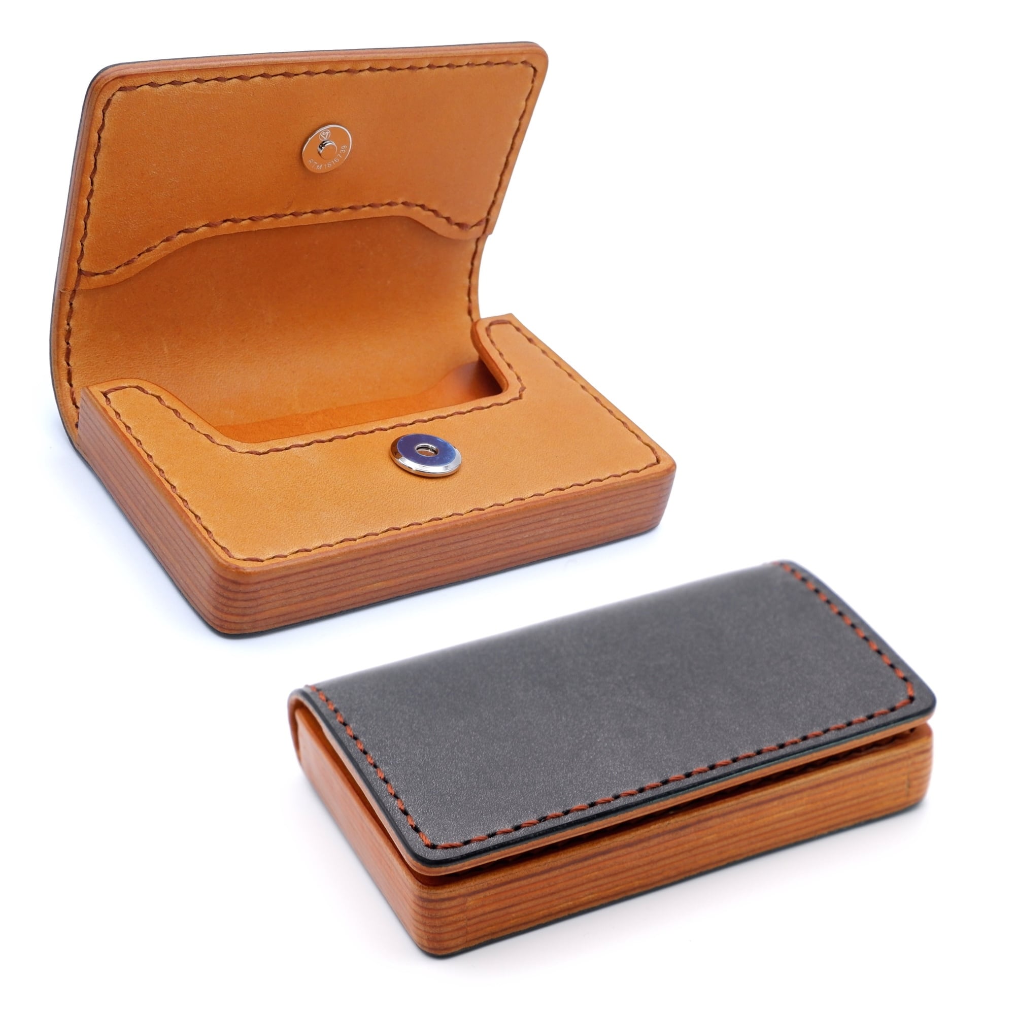 革を重ねて厚みを出し、手縫いならではの温かみを感じるマグネットタイプの名刺入れです。